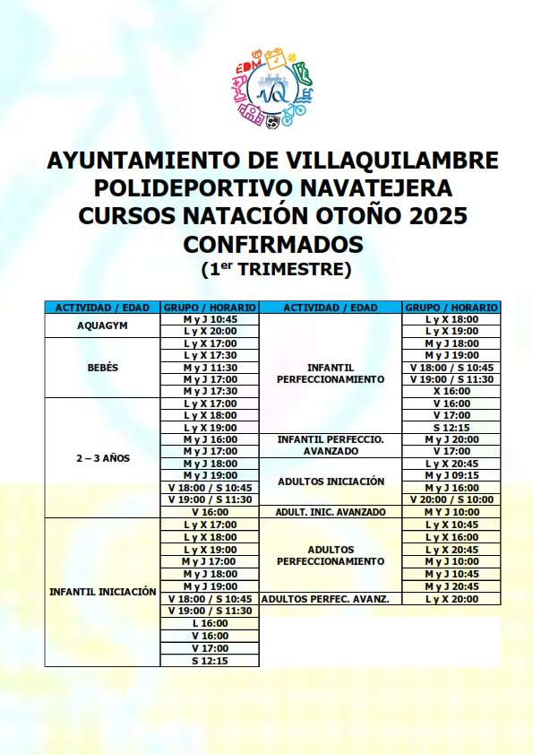 Los cursos comienzan el 06/10/2025 y durarán hasta el 20/12/2025. Más información en: polideportivonavatejera@villaquilambre.es o 987 408 131