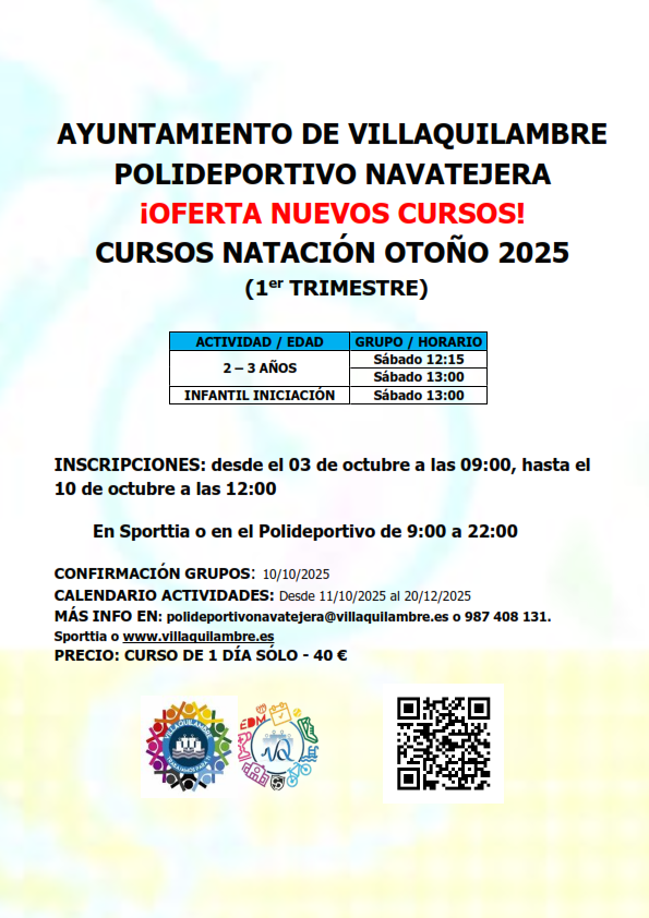 MÁS INFO EN: polideportivonavatejera@villaquilambre.es o 987 408 131