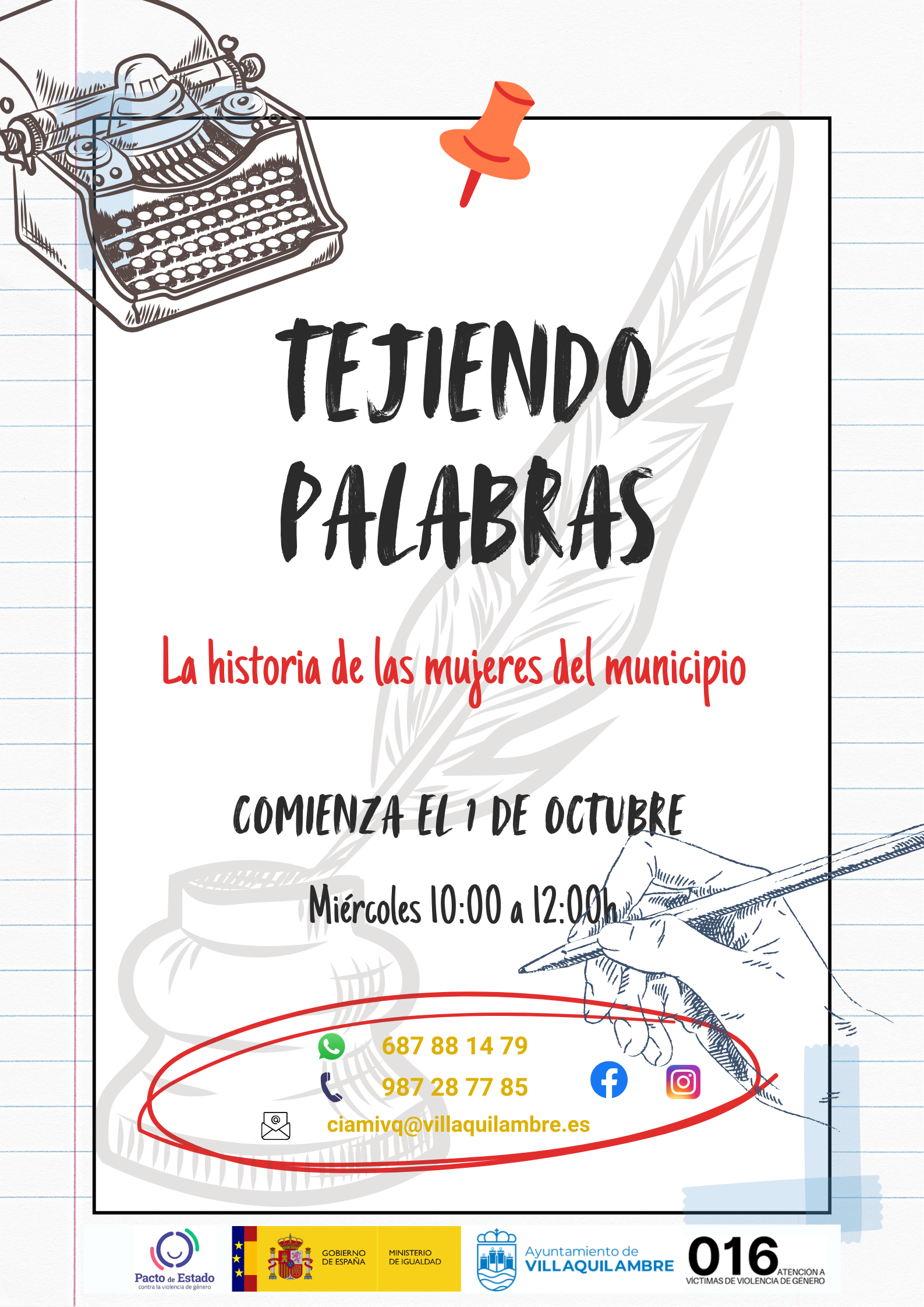 El CIAMI de Villaquilambre organiza el taller “Tejiendo Palabras”, un espacio de encuentro donde las mujeres del municipio podrán compartir sus vivencias, recuperar la memoria colectiva y dar valor a sus historias a través de la escritura y la expresión creativa.